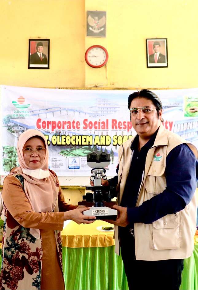 As part of the company’s commitment to sustainable development, particularly in the fields of education and community welfare, PT. Oleochem & Soap Industri has implemented a Corporate Social Responsibility (CSR) program through the provision of science laboratory equipment including Binocular Electric Microscope and Cabinet for Laboratory equipment for UPT SMPN 42 Medan.