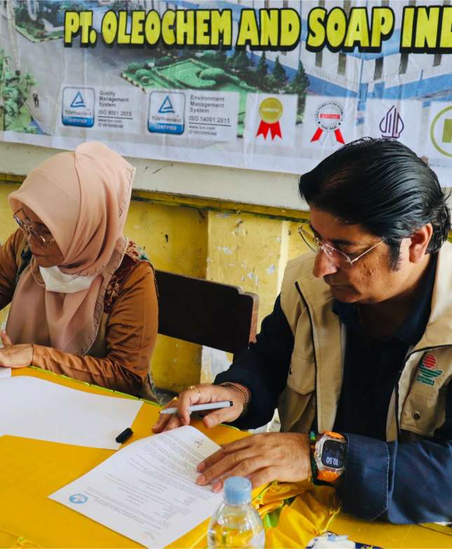 PT. Oleochem & Soap Industri committed to support effective teaching and learning by provision exactas Laboratory Equipments at UPT SMPN 42 Medan. This initiative builds on the company’s earlier CSR contribution in 2024, when PT. Oleochem donated 2 sets of dual-compartment waste bins (for organic and inorganic waste, 50-liter capacity) and 30 single-compartment waste bins (25-liter capacity) to the same school.
